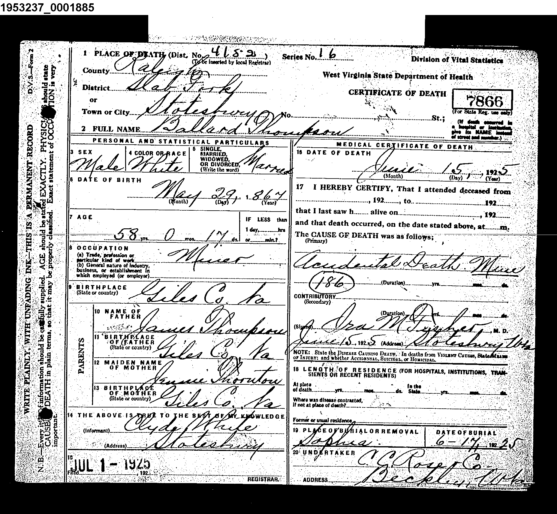 There's also a Bal Thompson who was killed in a mine accident in Stotesbury in 1925. His death certificate is available on the WV Vital Statistics website.